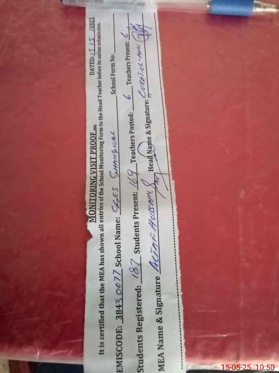 | Certified that this School was Inspected by the Undersigned MEA/DMO Today and the Information Stated Above is as Per Record. | |||||