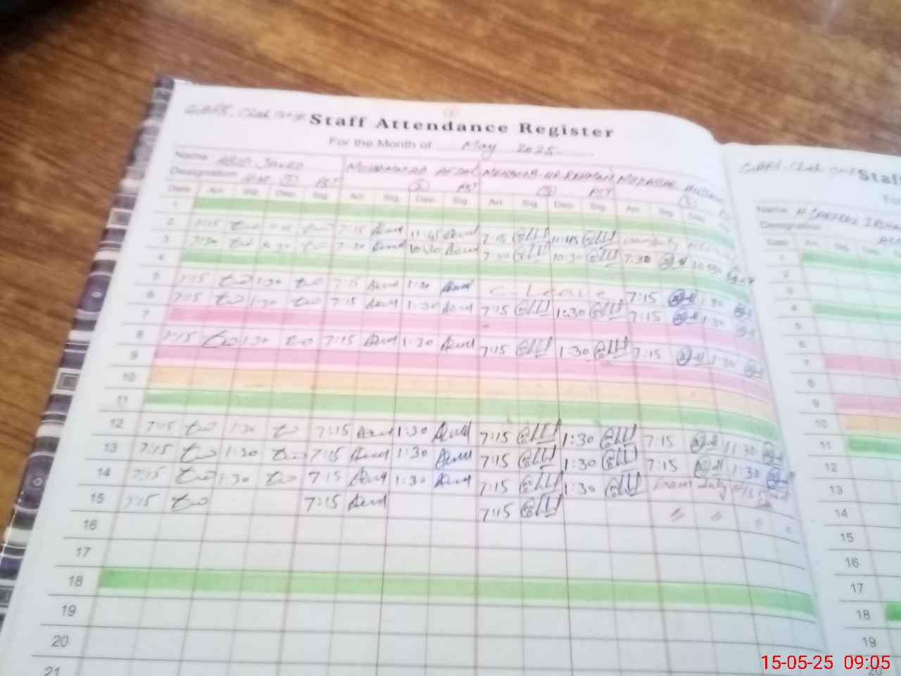 | CNIC | Full Name | Designation | R/C | Absence During Last Calender Month |