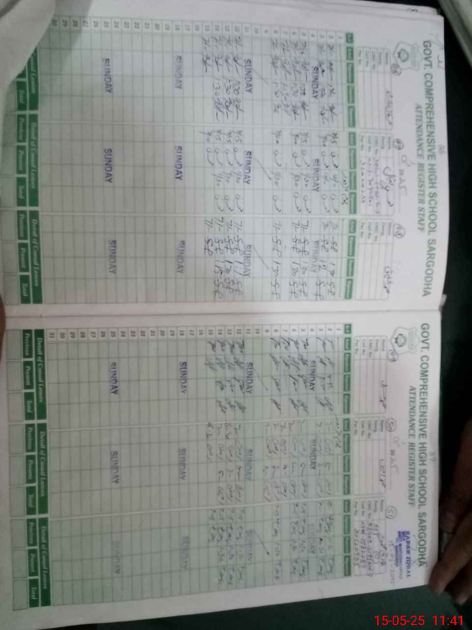 | CNIC | Full Name | Designation | R/C | Absence During Last Calender Month |