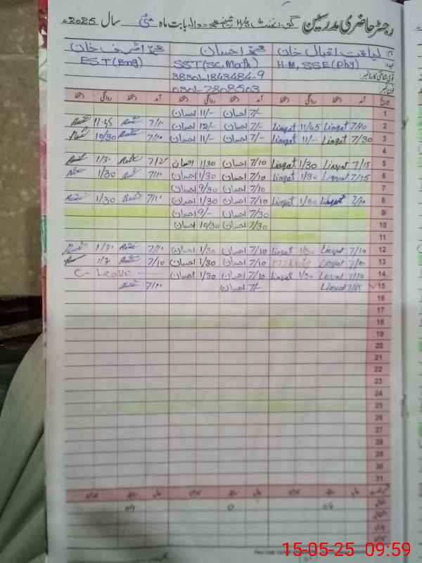| Name: Li**** Iq**** Designation: (School Headmaster's/Headmistress's) SSE PHY Phone/Cell Number: 03**** |