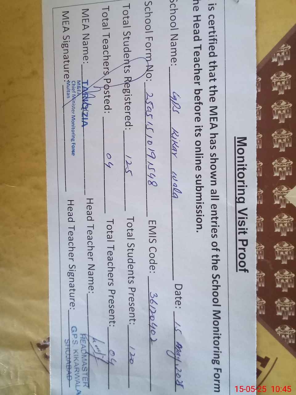 | EMIS Code: 36120402 | Name of School: GPS KIKAR WALA SHUJABAD | |||