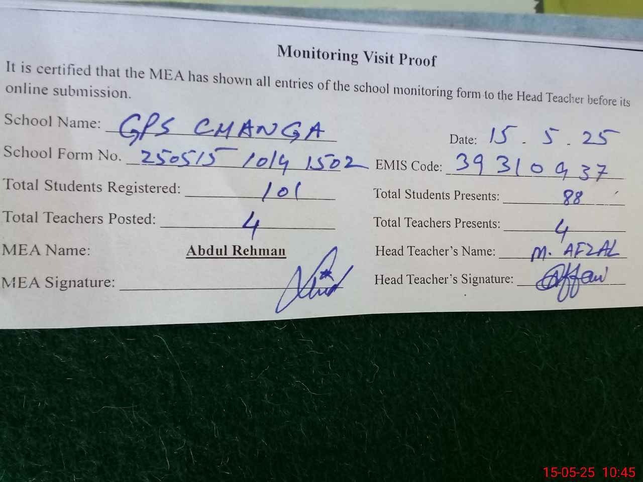 | EMIS Code: 39310937 | Name of School: GPS CHANGA | |||