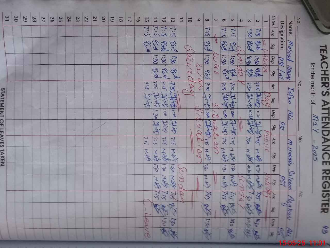 | 35**** | As**** Al**** | PST | Regular | 1 | 0 | 0 | 0 | 0 | 0 | 0 | 0 | 1 | Casual |