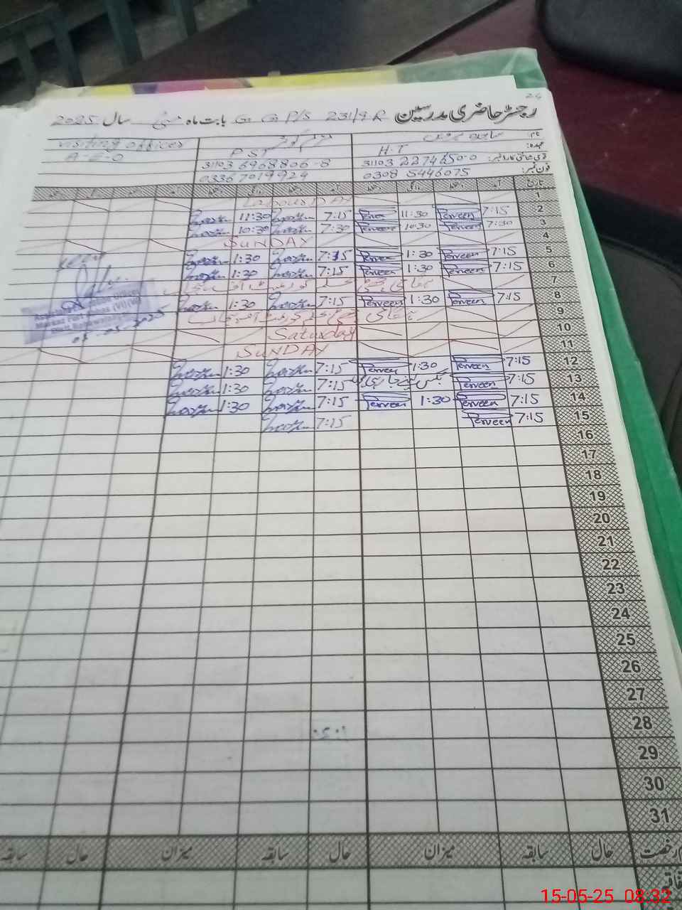 | Name: SA**** PE**** Designation: (School Headmaster's/Headmistress's) PTC/JV Phone/Cell Number: 03**** |