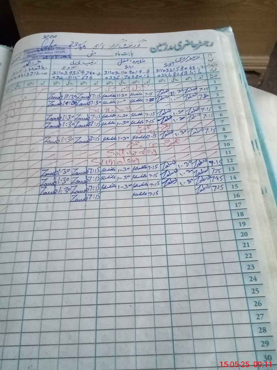 | 31**** | Sa**** Kh**** | 3 | 1 | 0 | 0 | 0 | 0 | 0 | 0 | 0 | 0 | 0 | Absent (Un-Authorized) |