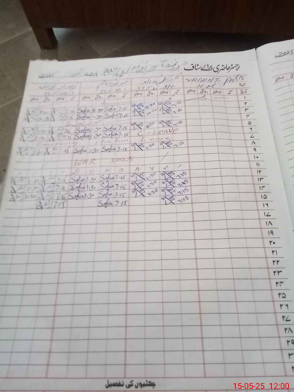 | Leave | Duty | Absent | Maternity | Medical | Ex- Pak |