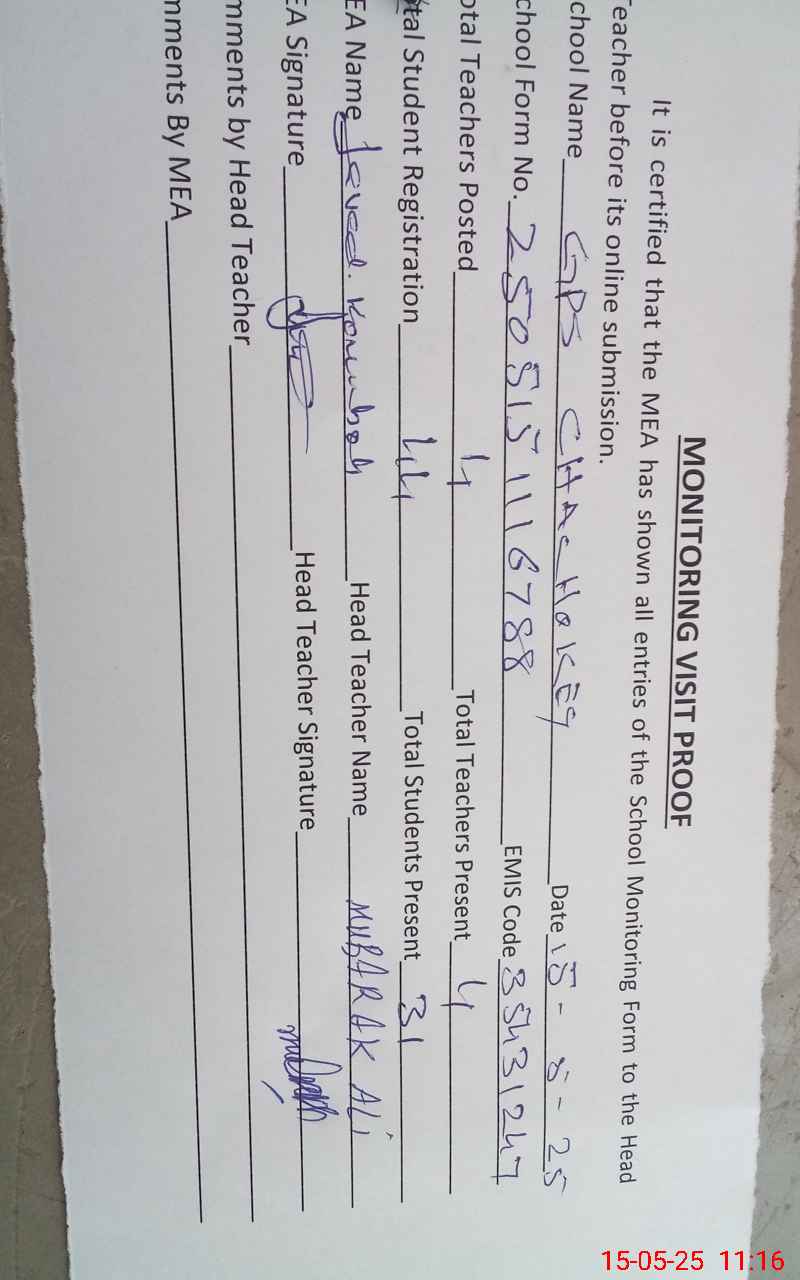 | EMIS Code: 35431247 | Name of School: GPS CHACHOKEY | |||