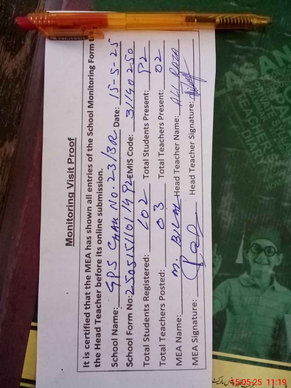 | EMIS Code: 31140250 | Name of School: GPS CHAK NO 23/3-R | |||