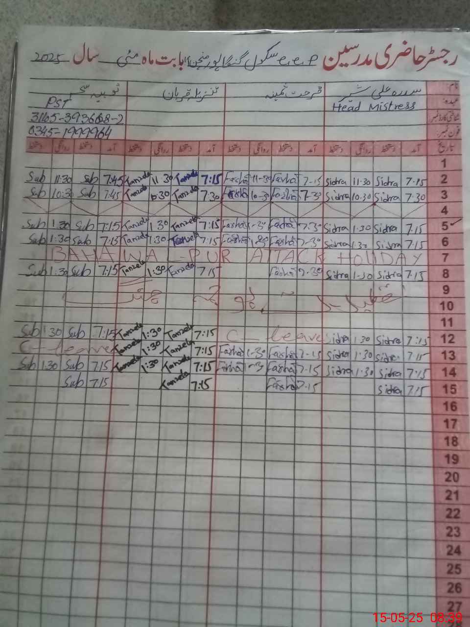 | Name: Si**** Al**** Sh**** Designation: (School Headmaster's/Headmistress's) PST Phone/Cell Number: 03**** |