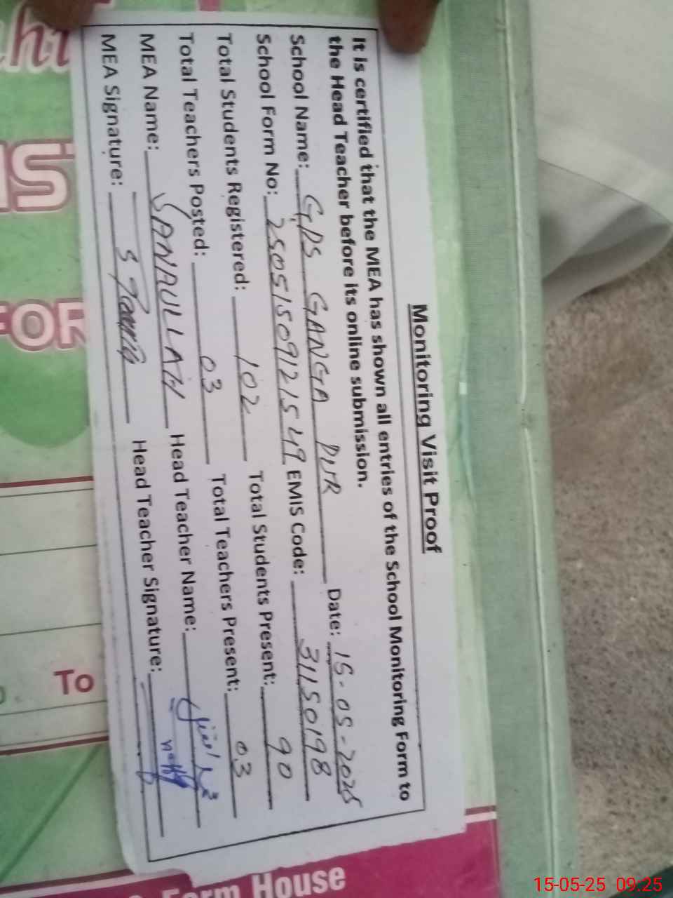 | EMIS Code: 31150198 | Name of School: GPS GANGA PUR | |||