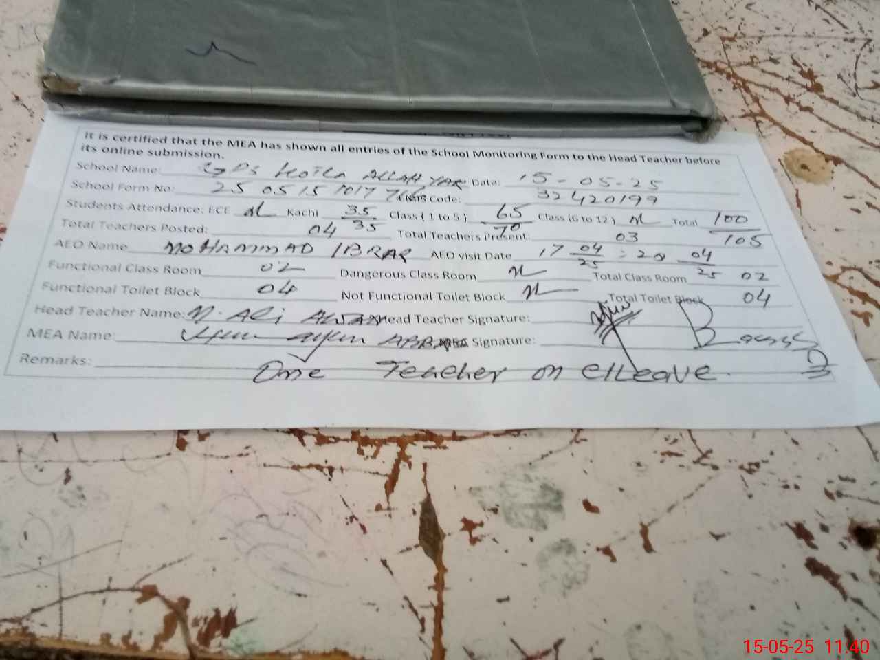 | EMIS Code: 32420199 | Name of School: GPS KOTLA ALLAH YAR | |||