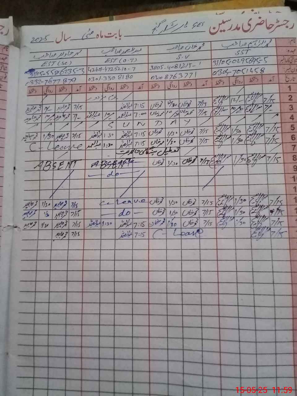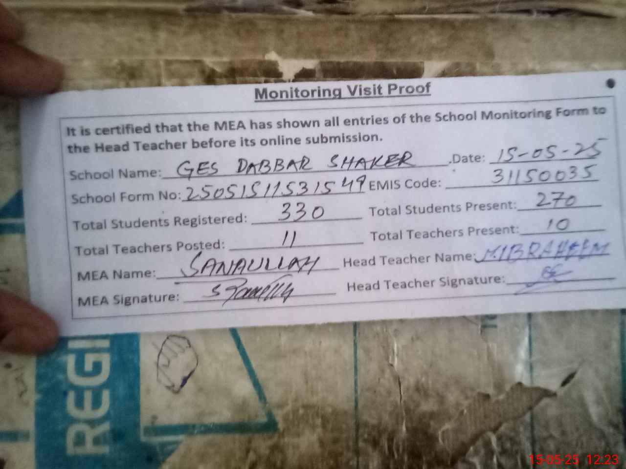 | EMIS Code: 31150035 | Name of School: GES DABBAR SHAKAR GUNJ | |||