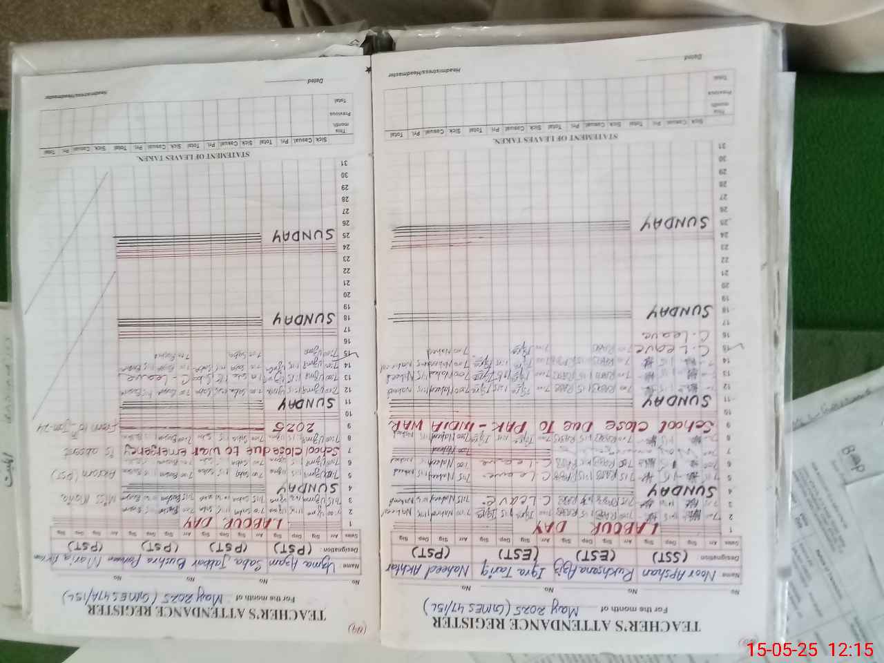 | Leave | Duty | Absent | Maternity | Medical | Ex- Pak |
