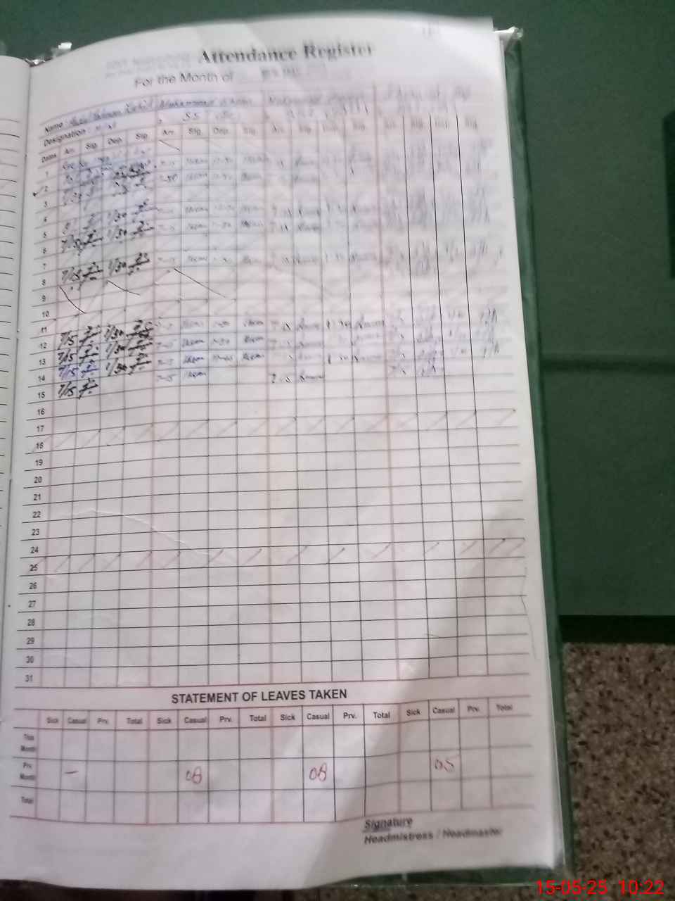 | No. of Students Present - Female | 0 | 0 | 0 | 0 | 0 | 0 | 0 | 0 | 0 | 0 | 0 | 0 | 0 | 0 | ||