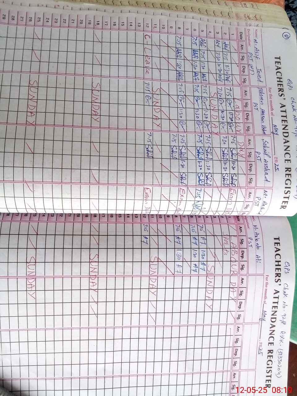| 31**** | Mu**** Ra**** | PST | Regular | 0 | 0 | 0 | 0 | 0 | 0 | 0 | 0 | 0 | Exam Duty |