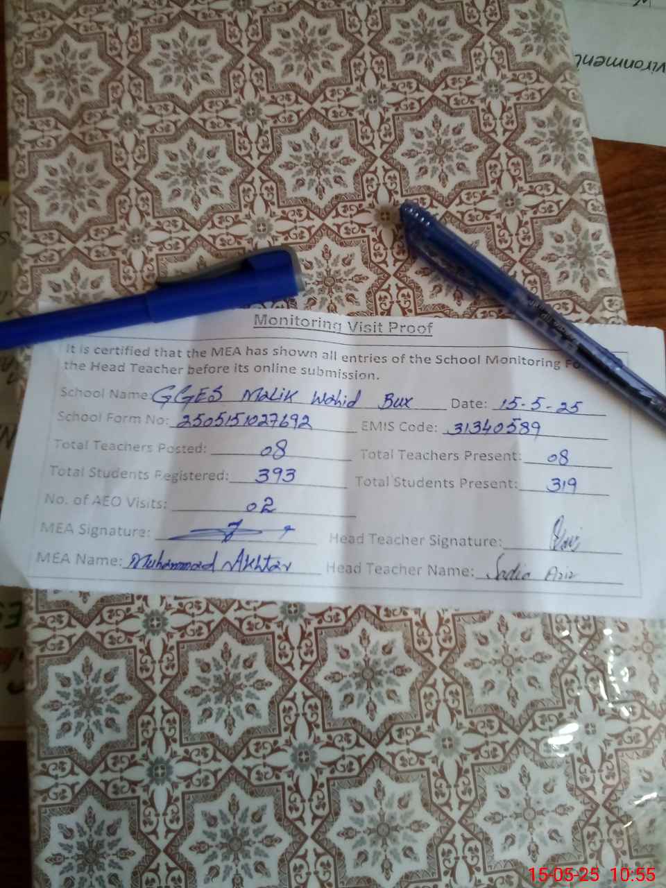 | EMIS Code: 31340589 | Name of School: GGES MALIK WAHID BUX | |||