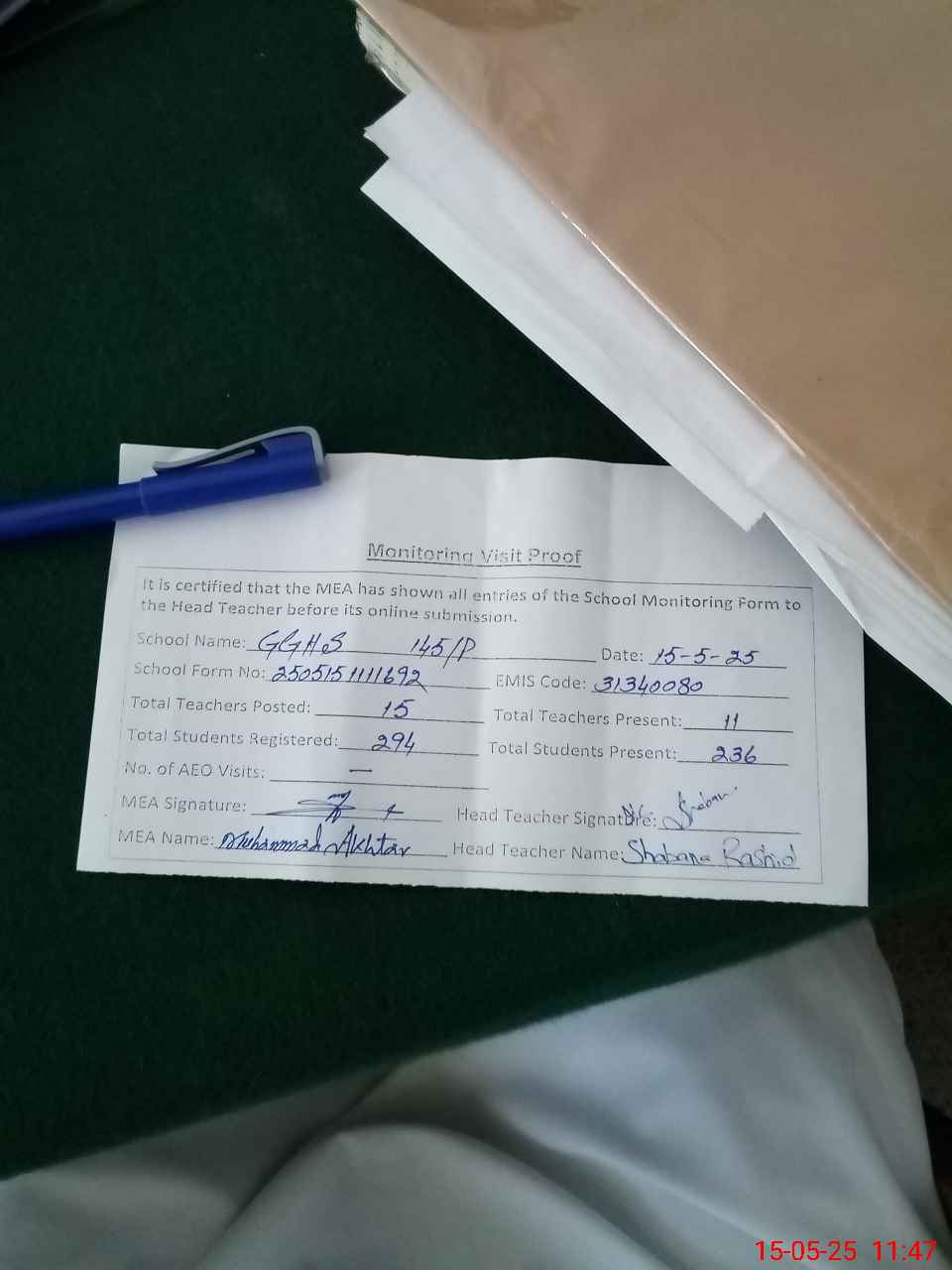 | EMIS Code: 31340080 | Name of School: GGHS CHAK 145/P | |||