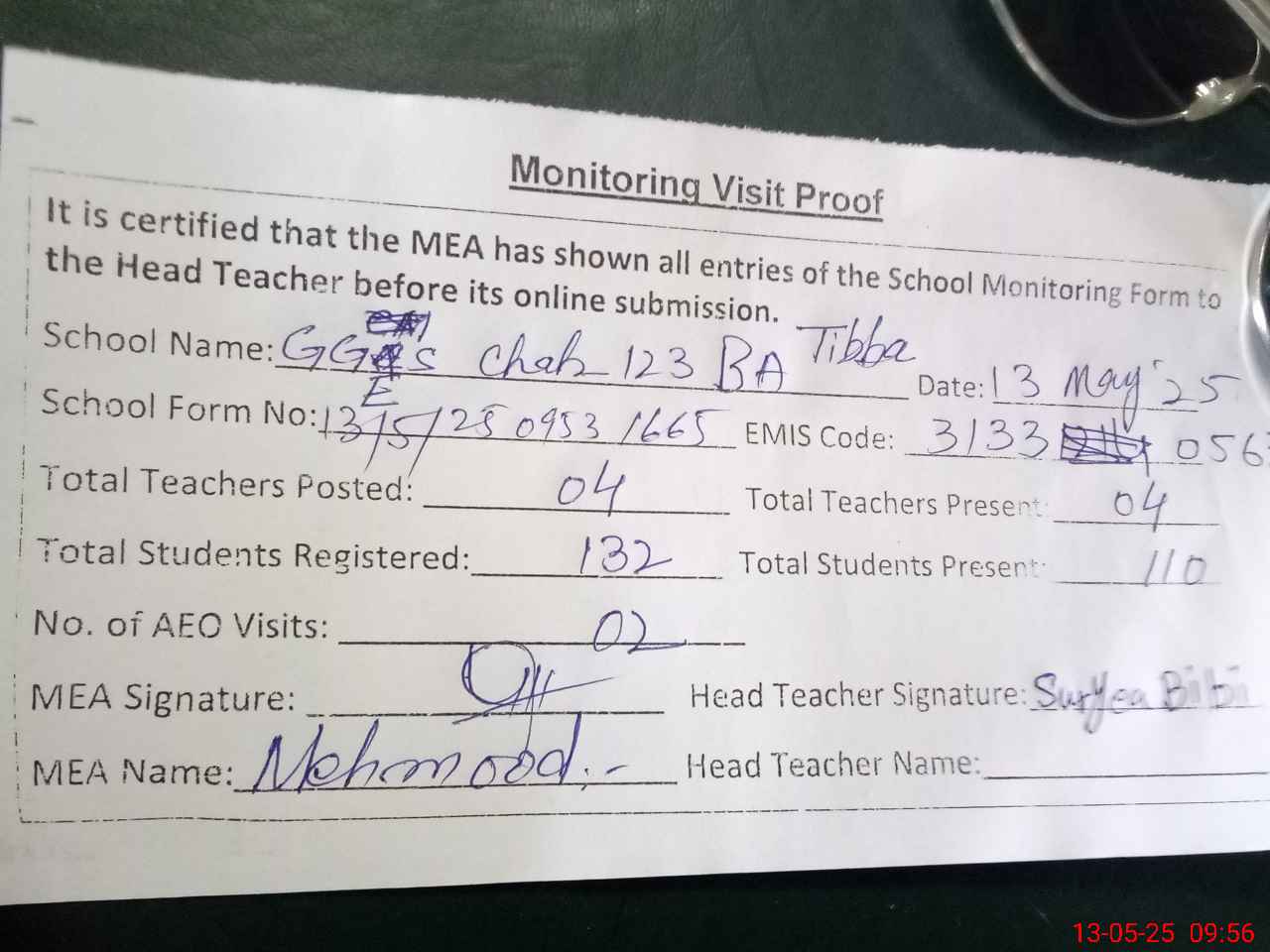 | EMIS Code: 31330563 | Name of School: GGES 123/P TIBBA | |||