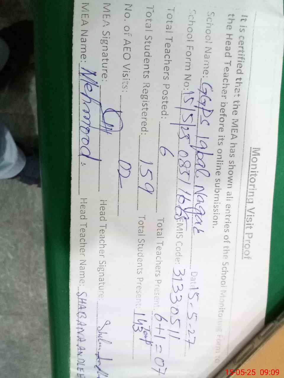 | EMIS Code: 31330511 | Name of School: GGPS IQBAL NAGAR | |||