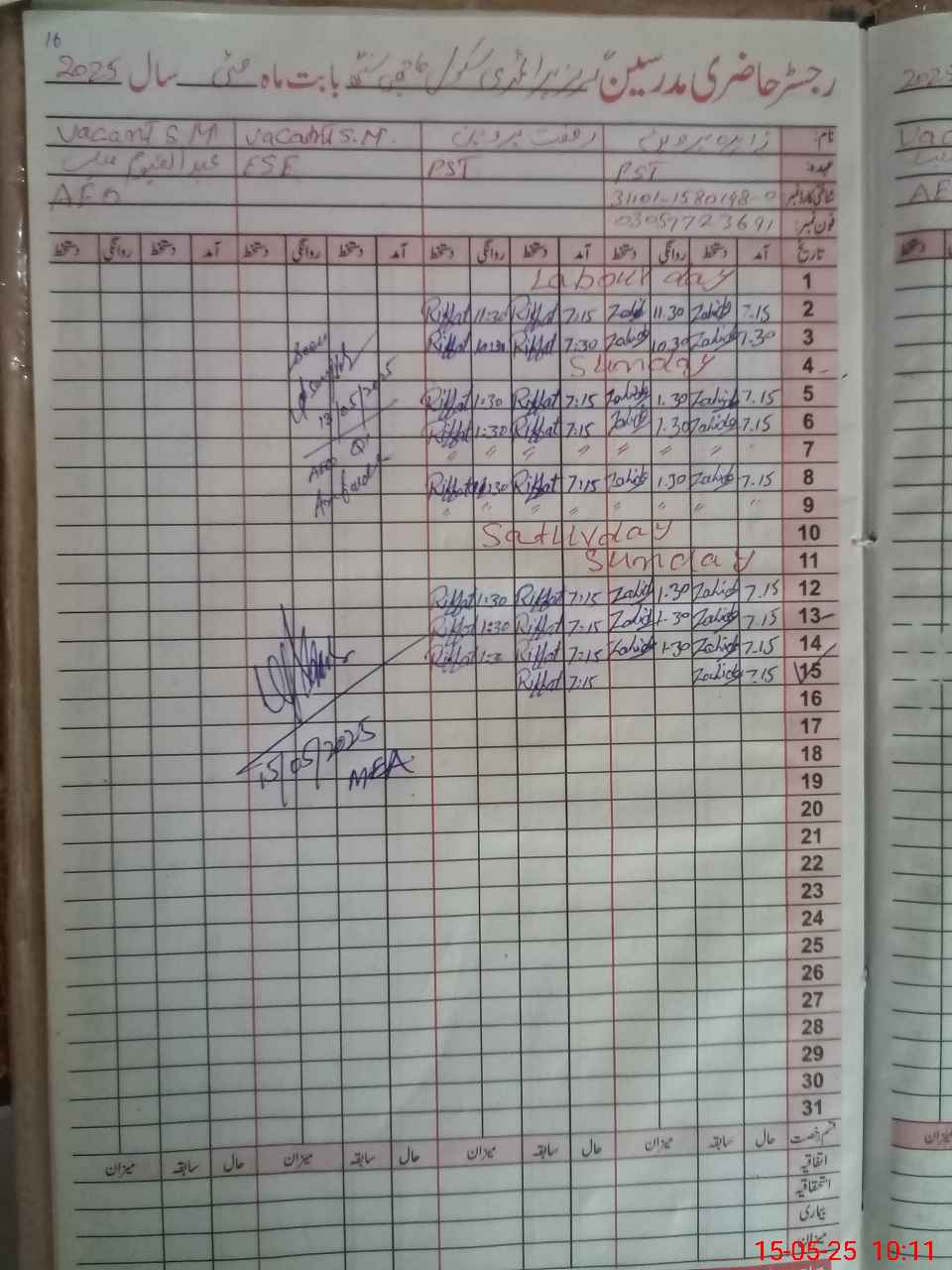 | Name: ZA**** PE**** Designation: (School Headmaster's/Headmistress's) PST Phone/Cell Number: 03**** |