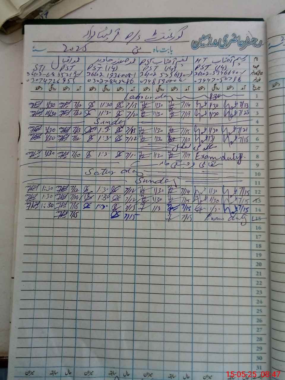| 36**** | Wa**** Af**** | 2 | 2 | 0 | 0 | 0 | 0 | 0 | 0 | 0 | 0 | 0 | Exam Duty |