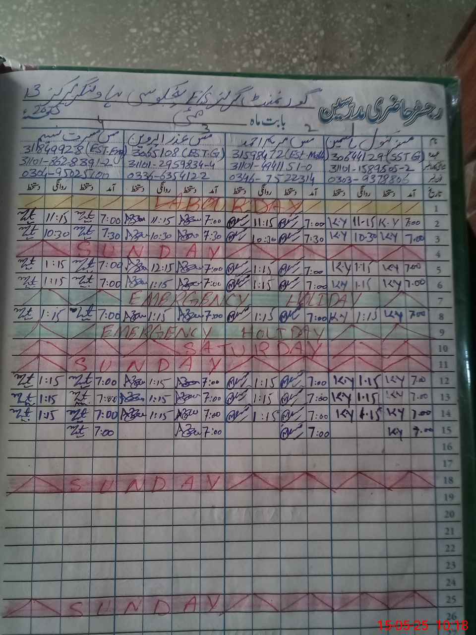 | Leave | Duty | Absent | Maternity | Medical | Ex- Pak |