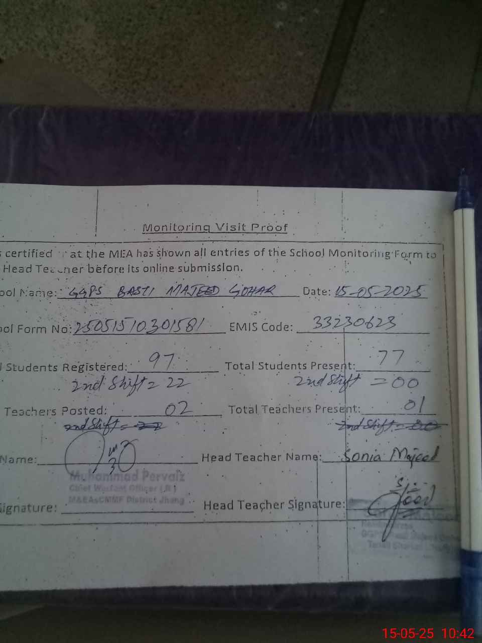 | EMIS Code: 33230623 | Name of School: GGPS BASTI MAJEED GOHAR | |||