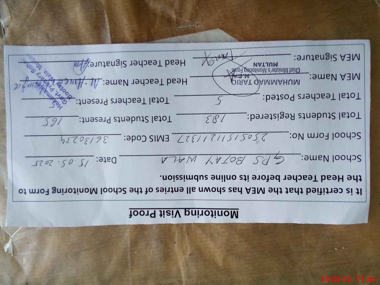 | EMIS Code: 36130234 | Name of School: GES BOTAY WALA P/ O GULZAR PUR | |||