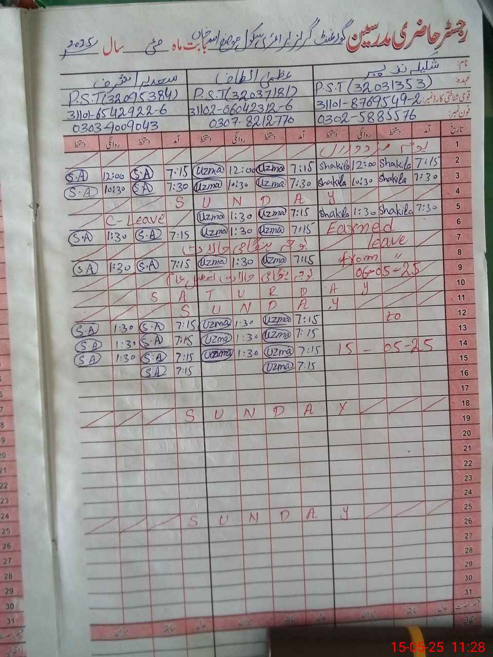 | Name: SH**** NA**** Designation: (School Headmaster's/Headmistress's) PST Phone/Cell Number: 03**** |