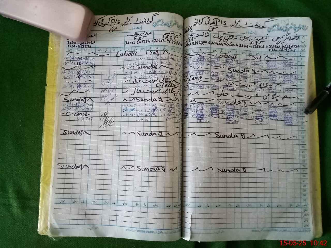| CNIC | Full Name | Designation | R/C | Absence During Last Calender Month |