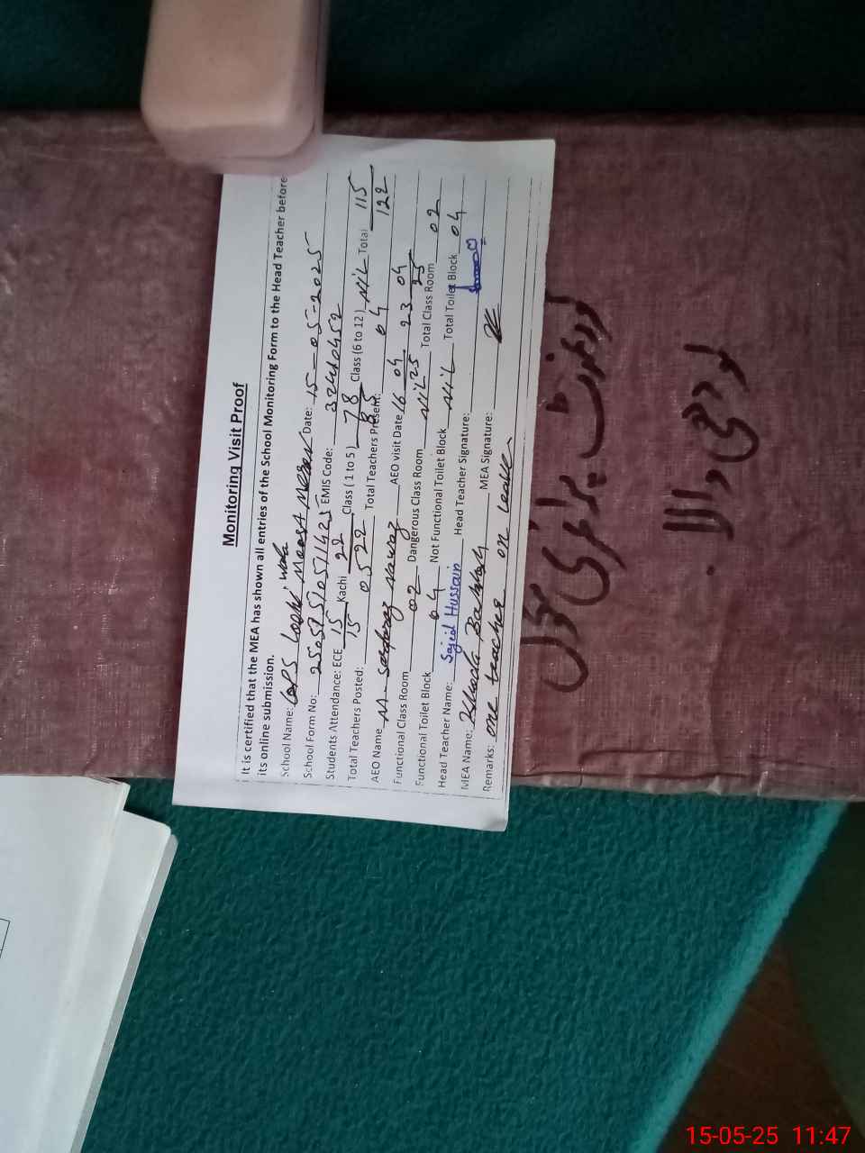 | Certified that this School was Inspected by the Undersigned MEA/DMO Today and the Information Stated Above is as Per Record. | |||||