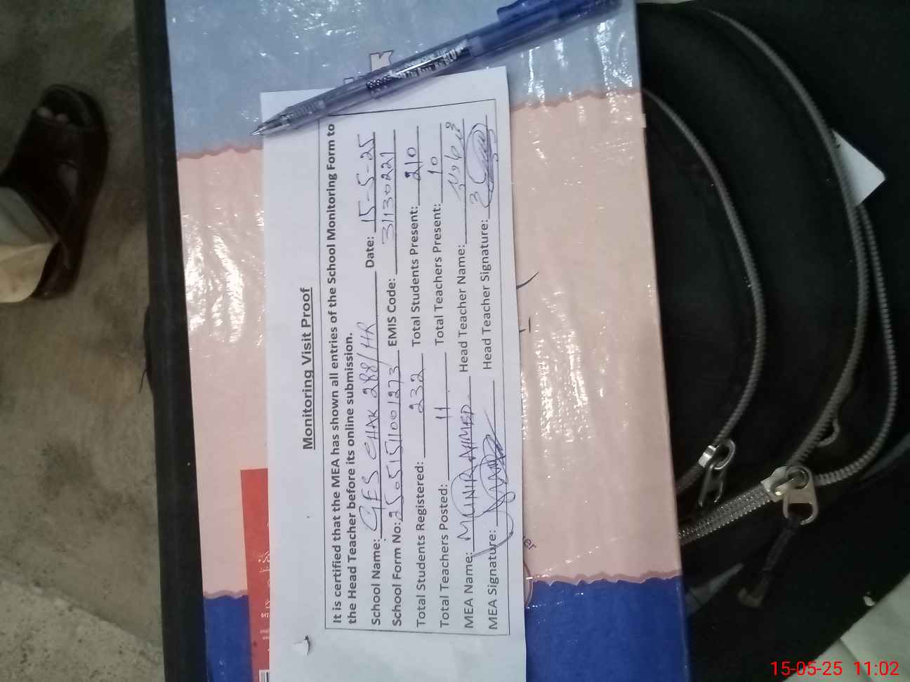 | Attendance Register | Head Teacher | MEA with School | Visit Proof |