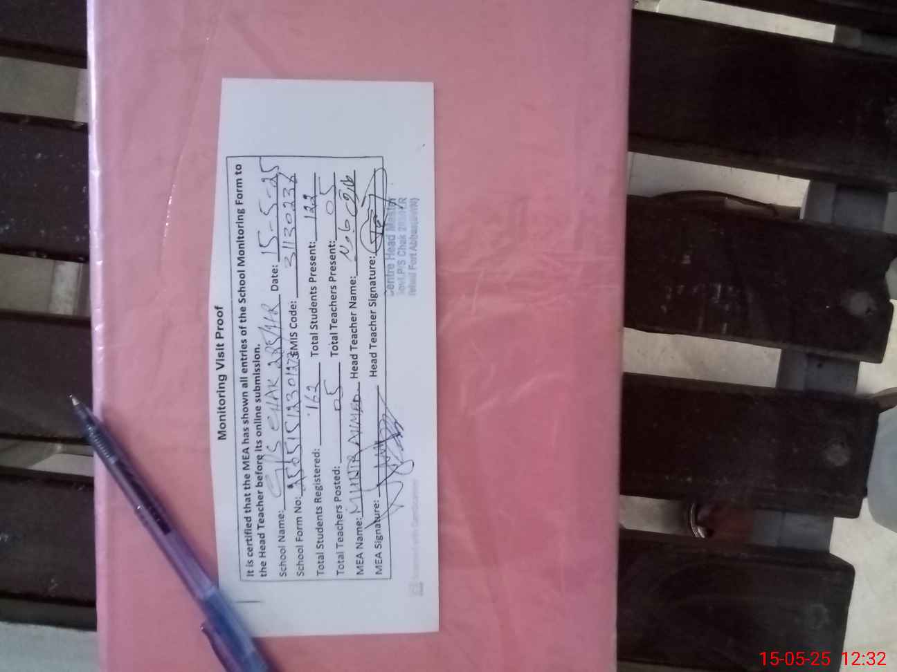 | Attendance Register | Head Teacher | MEA with School | Visit Proof |