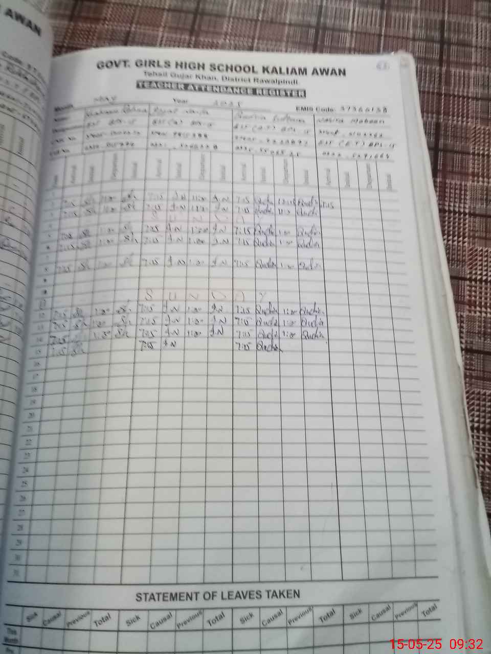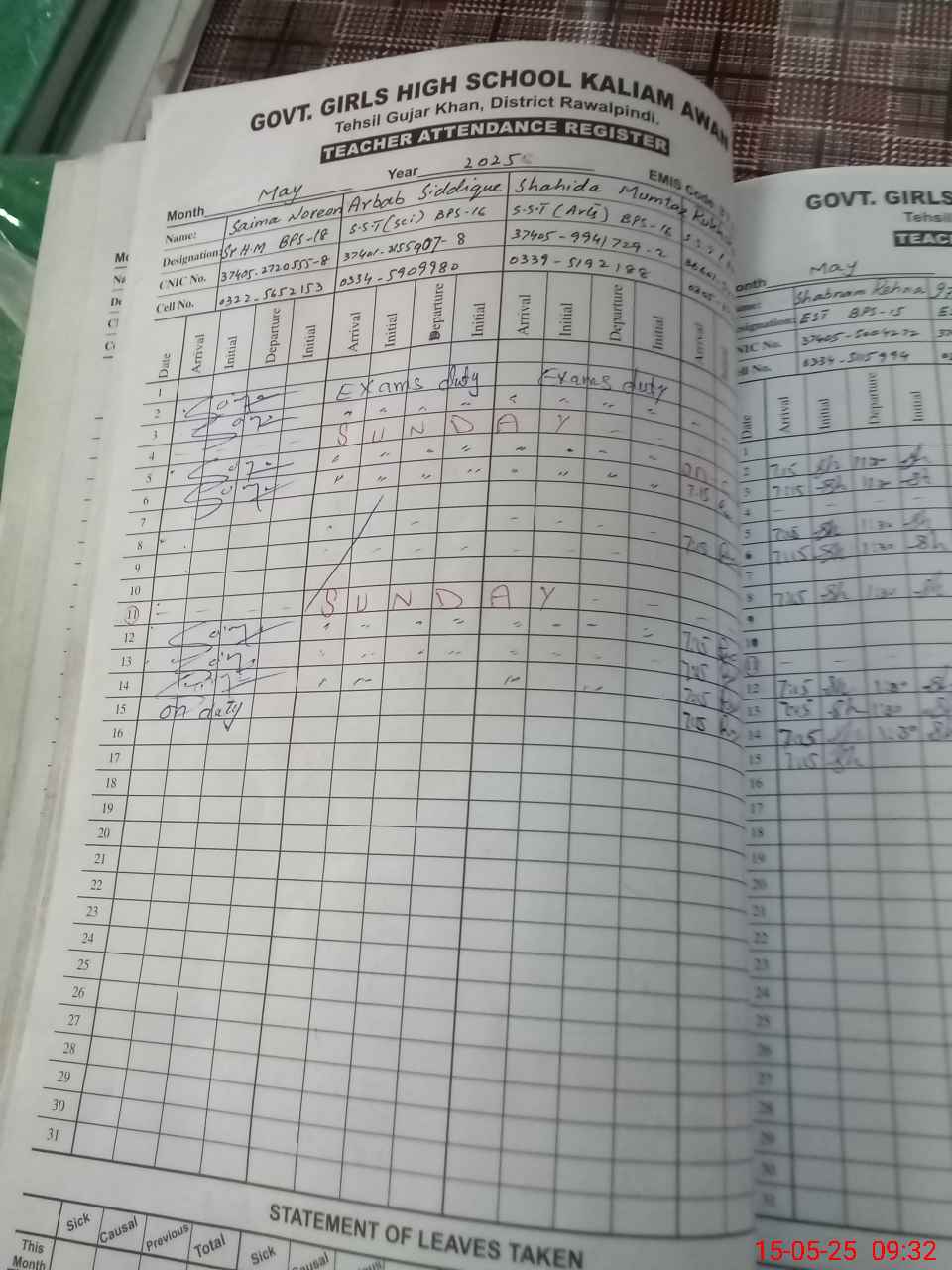 | 37**** | Ar**** Sa**** | SST | Regular | 0 | 0 | 0 | 0 | 0 | 0 | 0 | 0 | 0 | Exam Duty |