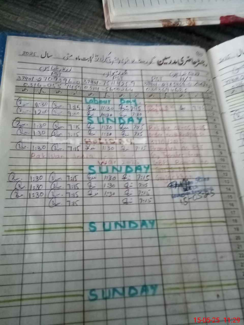 | Monitoring Date: 15-05-2025 | Start Time: 15-05-2025 11:11 AM | End Time: 15-05-2025 11:40 AM | Name of MEA: Kh**** Ri**** | |