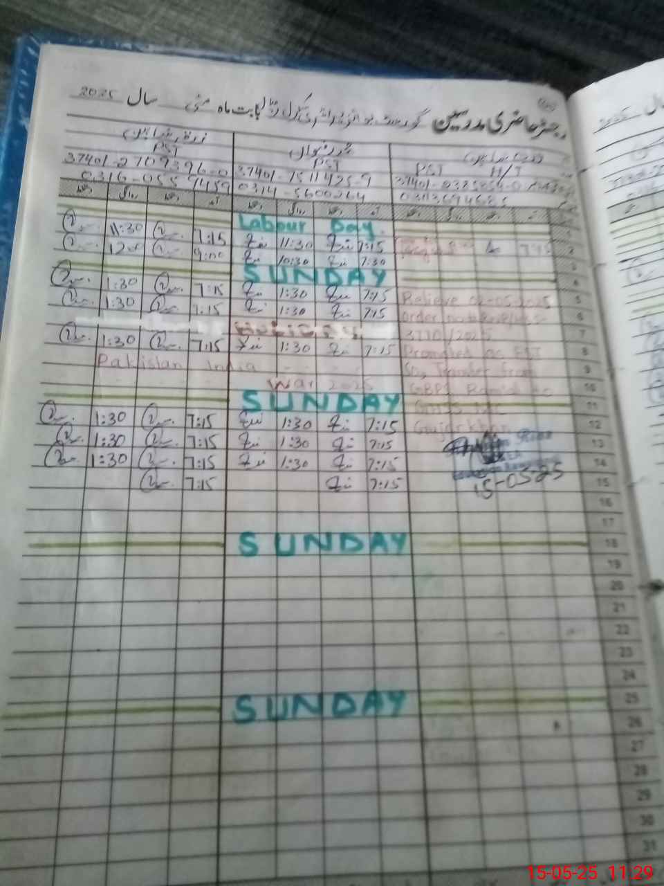 | CNIC | Full Name | Designation | R/C | Absence During Last Calender Month |