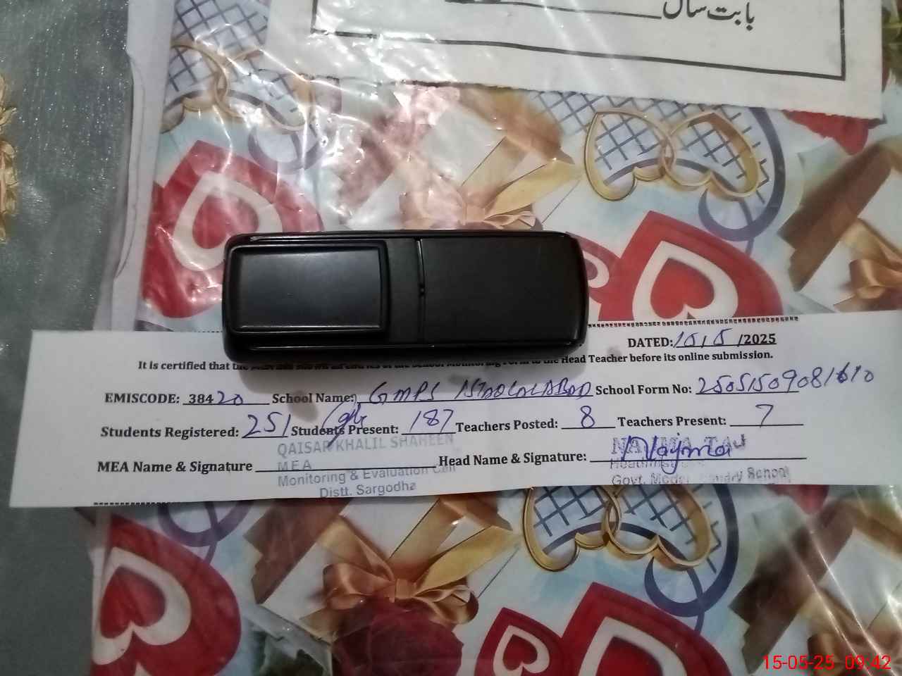 | Certified that this School was Inspected by the Undersigned MEA/DMO Today and the Information Stated Above is as Per Record. | |||||