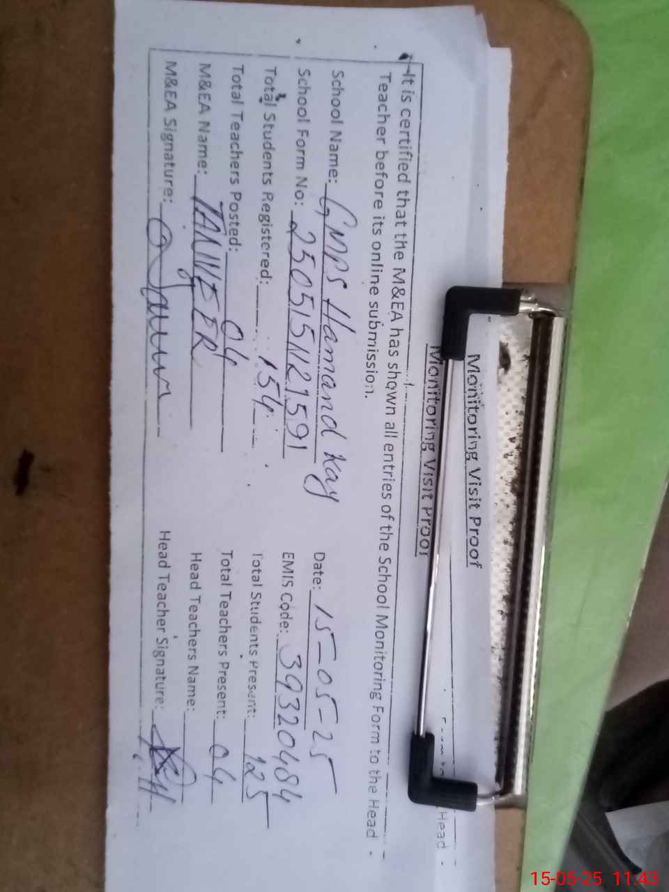 | EMIS Code: 39320484 | Name of School: GMPS HAMAND KAY | |||