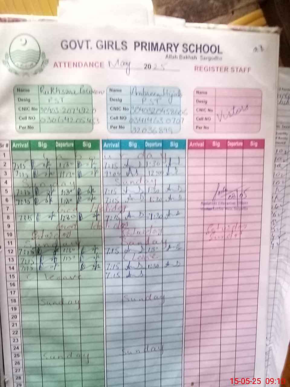 | CNIC | Full Name | Designation | R/C | Absence During Last Calender Month |
