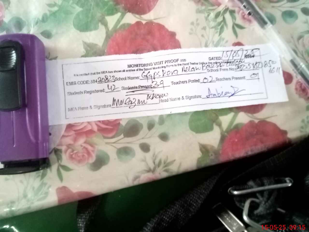 | Attendance Register | Head Teacher | MEA with School | Visit Proof |