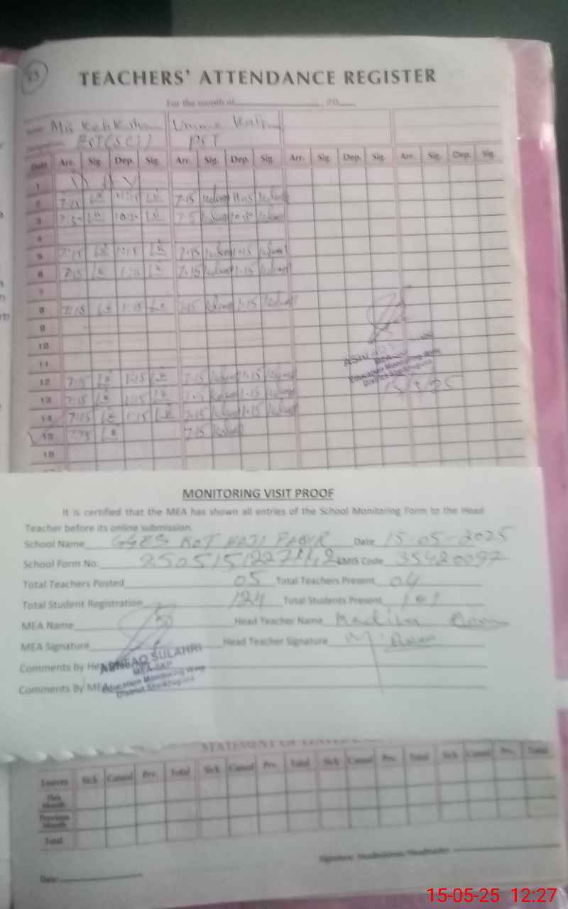 | Attendance Register | Head Teacher | MEA with School | Visit Proof |