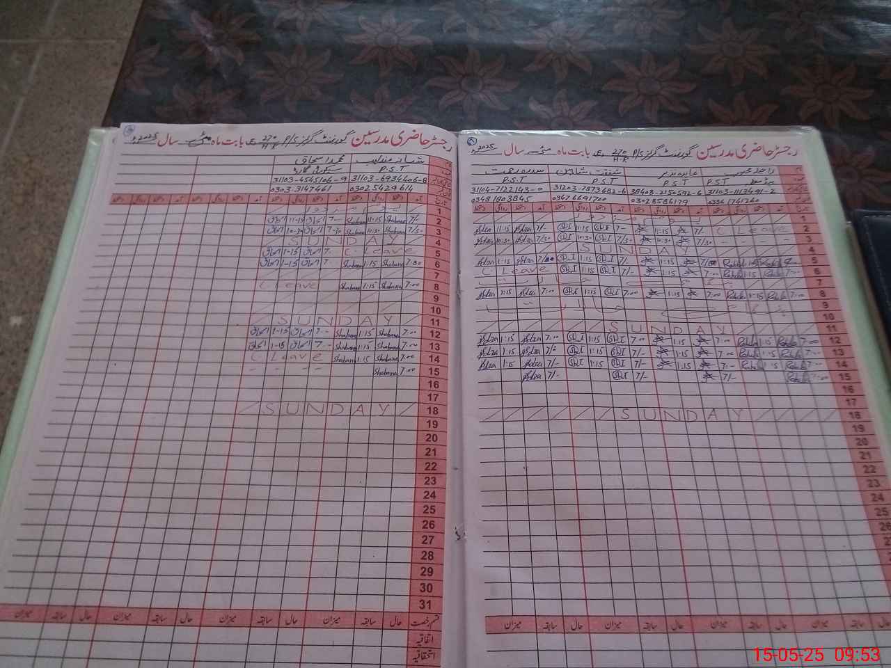 | CNIC | Full Name | Designation | R/C | Absence During Last Calender Month |