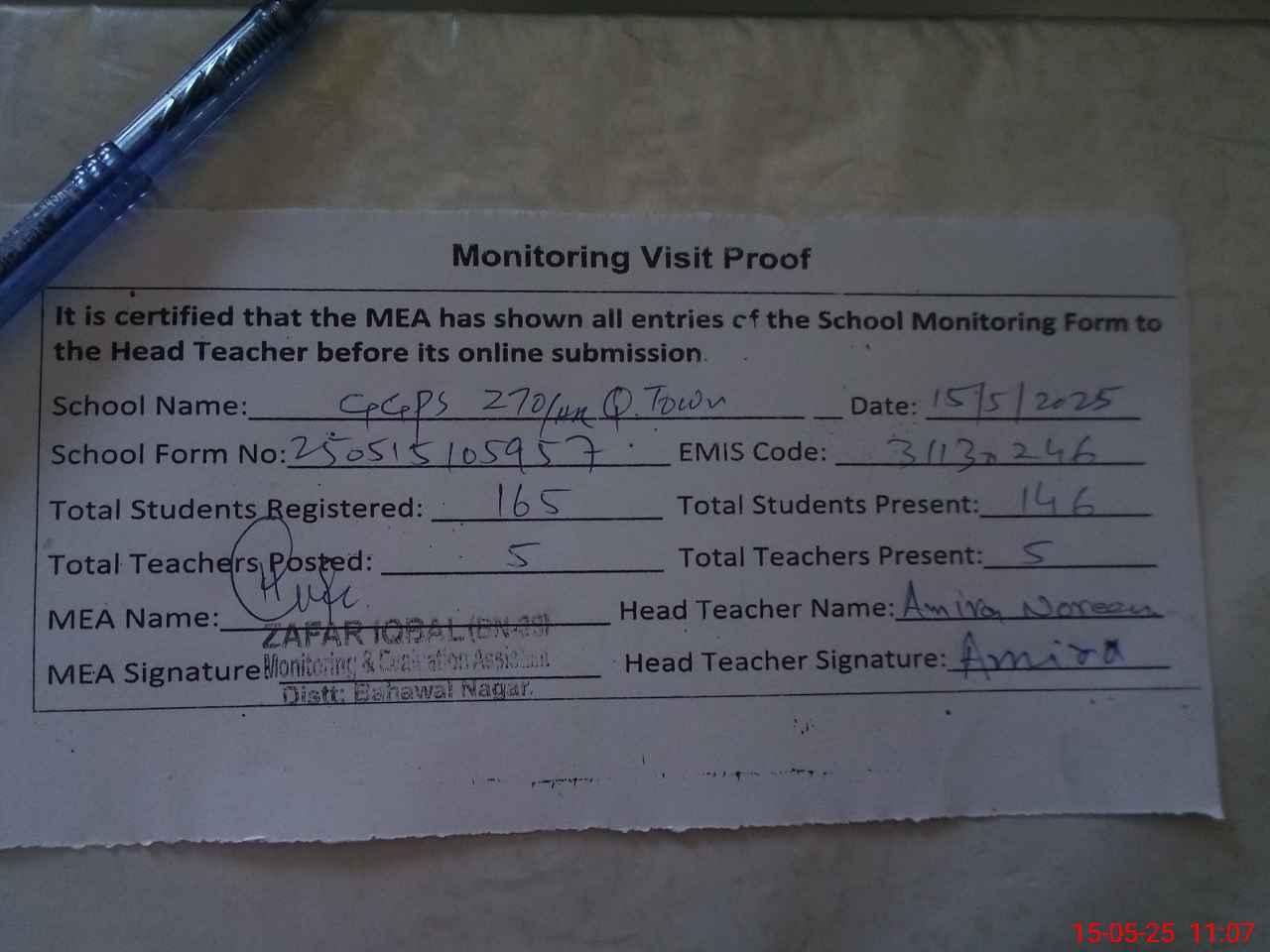 | EMIS Code: 31130246 | Name of School: GGPS CHAK NO. 270/HR-Q | |||