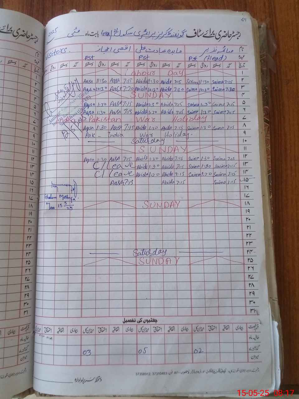 | CNIC | Full Name | Designation | R/C | Absence During Last Calender Month |