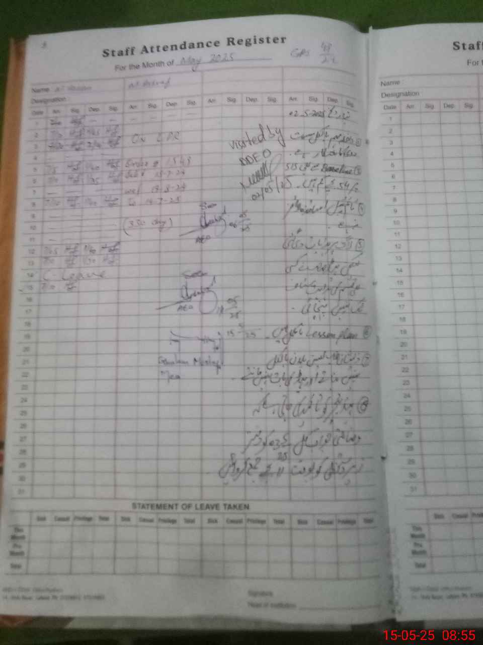 | Attendance Register | Head Teacher | MEA with School | Visit Proof |