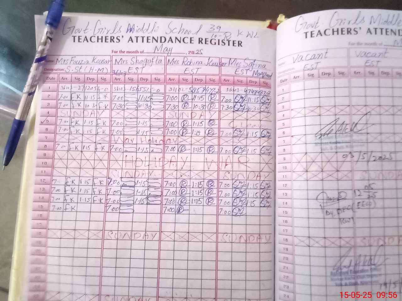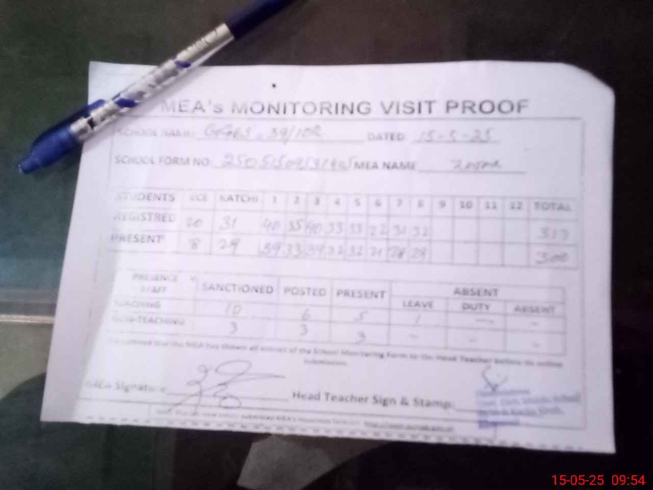 | Attendance Register | Head Teacher | MEA with School | Visit Proof |