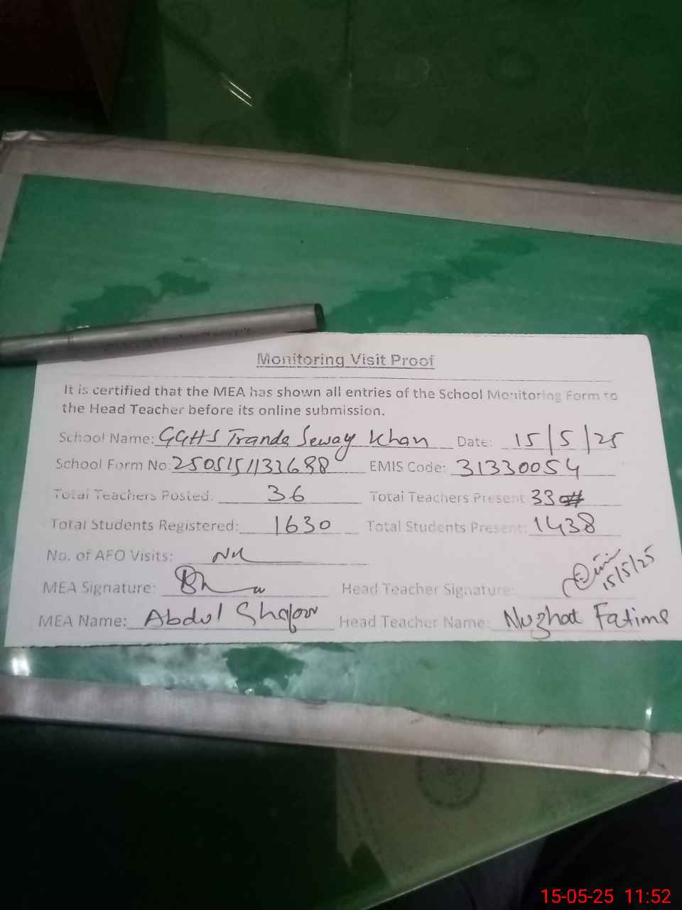 | EMIS Code: 31330054 | Name of School: GGHSS TRANDA SAWAY KHAN | |||