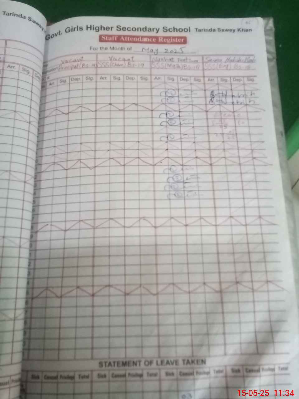 | 31**** | Mu**** Ja**** | JUNIOR CLK | Regular | 0 | 0 | 0 | 0 | 0 | 0 | 0 | 0 | 0 | Exam Duty |