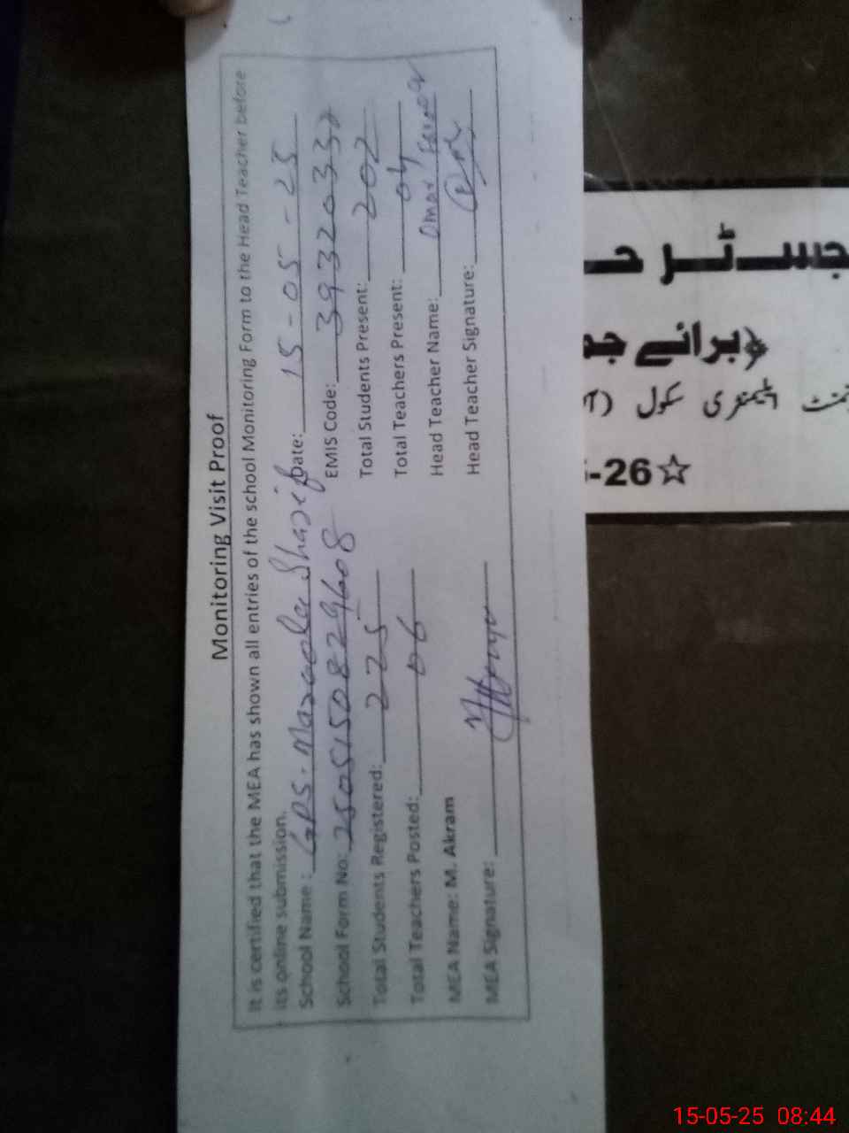 | Certified that this School was Inspected by the Undersigned MEA/DMO Today and the Information Stated Above is as Per Record. | |||||