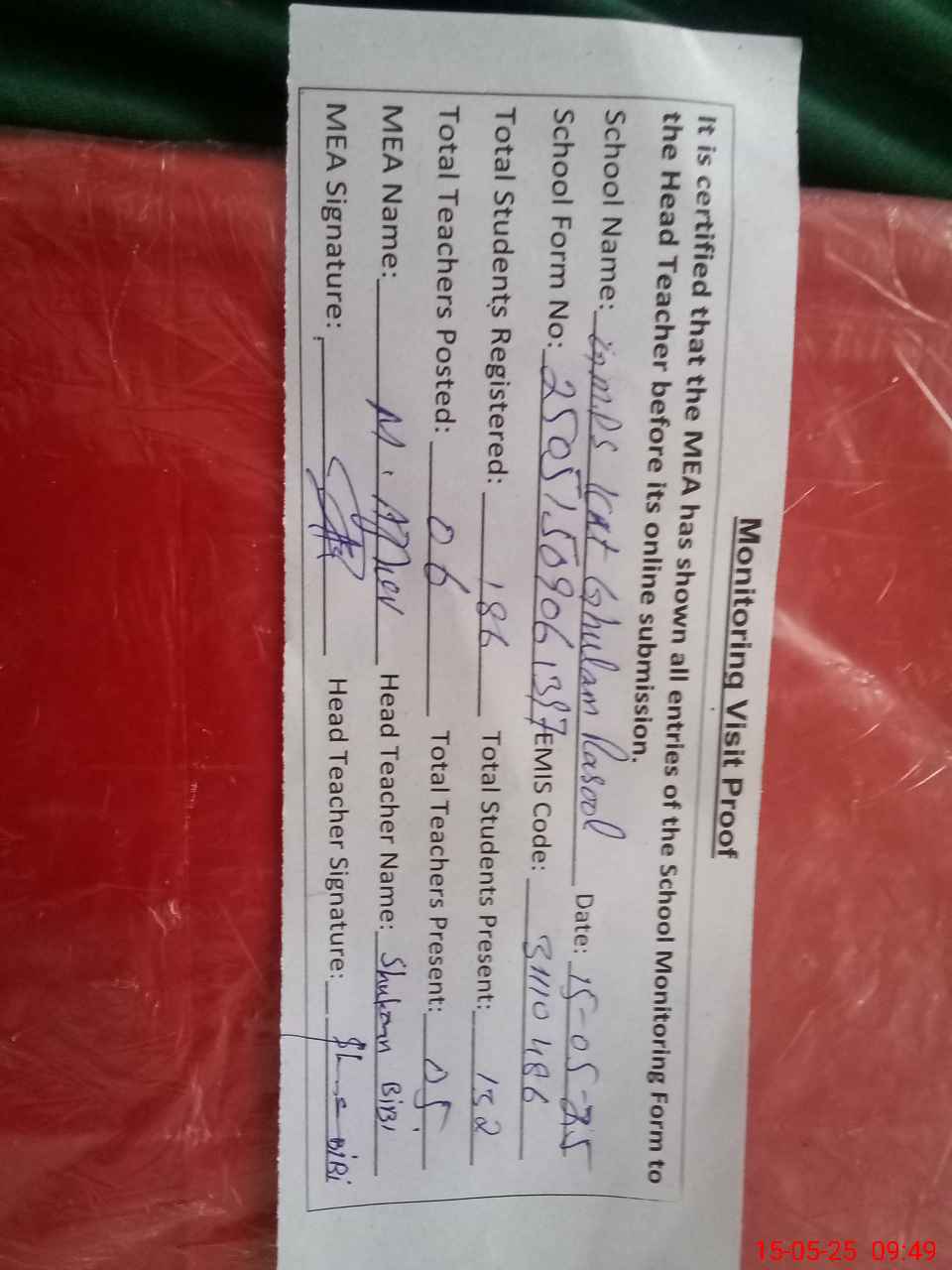 | EMIS Code: 31110486 | Name of School: GMPS KOT GHULAM RASOOL | |||